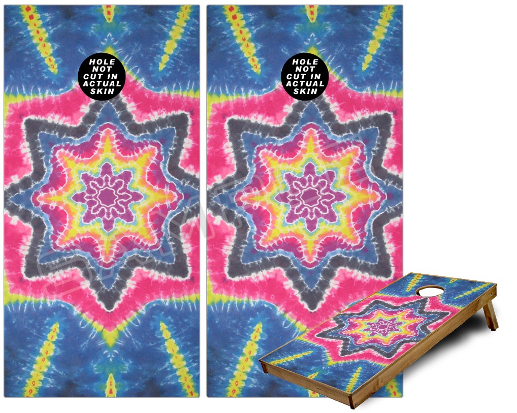 Cornhole Game Board Vinyl Skin Wrap Kit - Tie Dye Star 101 fits 24x48 game boards (GAMEBOARDS NOT INCLUDED)