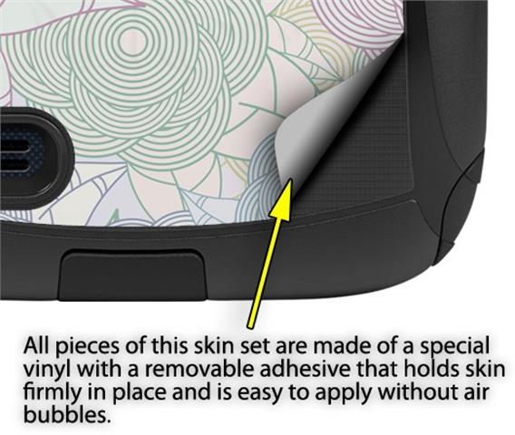 uSkins™ are self adhering vinyl decal style skins and are a great way to add a new look to your protective case. uSkins are a composite of two layers of commercial grade materials. The bottom layer is a soft, flexible vinyl with a special removable adhesive that is easily positioned, applied without air bubbles. Next we print the bottom layer with UV protected, fade resistant inks that deliver superb photo quality designs in vibrant colors. Finally we bond a professional grade laminate over the entire skin adding a glossy protective finish.