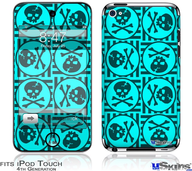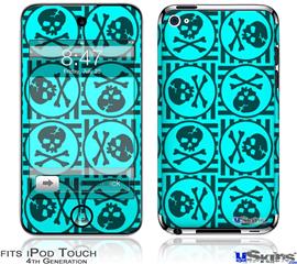 iPod Touch 4G Decal Style Vinyl Skin - Skull Patch Pattern Blue