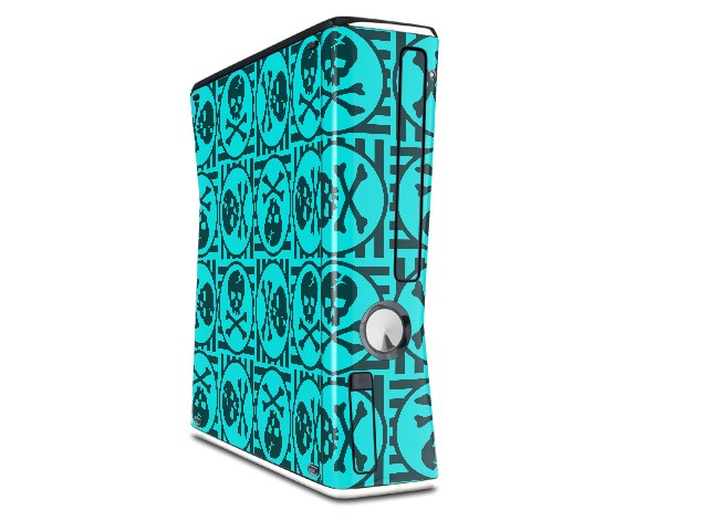 Skull Patch Pattern Blue Decal Style Skin for XBOX 360 Slim Vertical