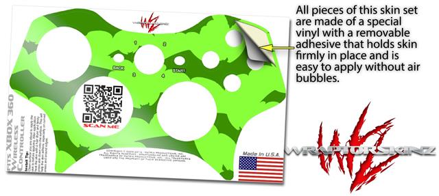 XBOX 360 Wireless Controller Decal Style Skin - Deathrock Bats Green (CONTROLLER NOT INCLUDED)