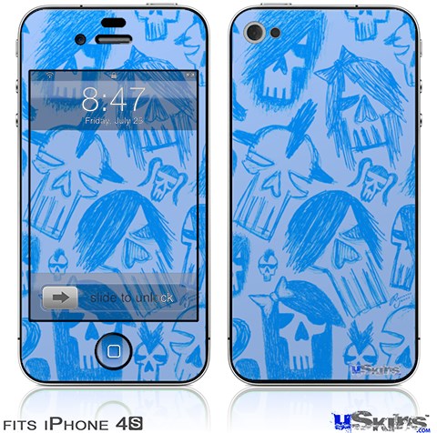 iPhone 4S Decal Style Vinyl Skin - Skull Sketches Blue