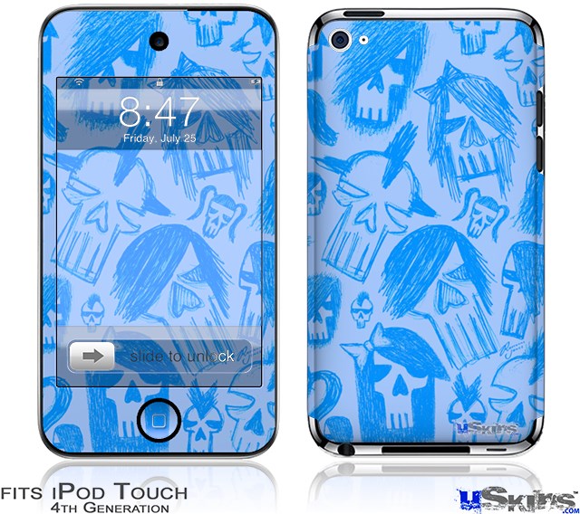 iPod Touch 4G Decal Style Vinyl Skin - Skull Sketches Blue