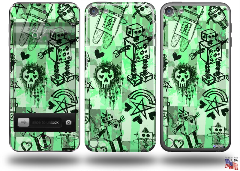 Scene Kid Sketches Green Decal Style Vinyl Skin - fits Apple iPod Touch 5G (IPOD NOT INCLUDED)