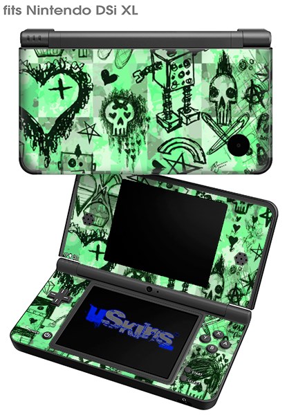 Scene Kid Sketches Green - Decal Style Skin fits Nintendo DSi XL (DSi SOLD SEPARATELY)