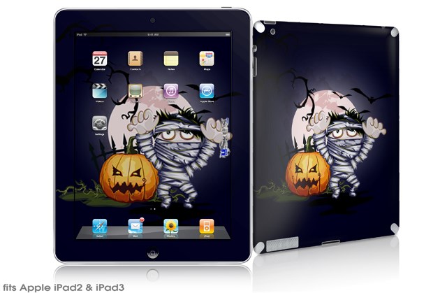 iPad Skin - Halloween Jack O Lantern Pumpkin Bats and Zombie Mummy (fits iPad2 and iPad3)