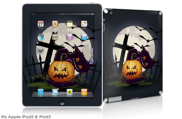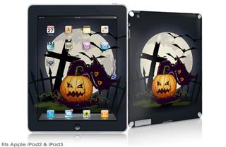 iPad Skin - Halloween Jack O Lantern and Cemetery Kitty Cat (fits iPad2 and iPad3)