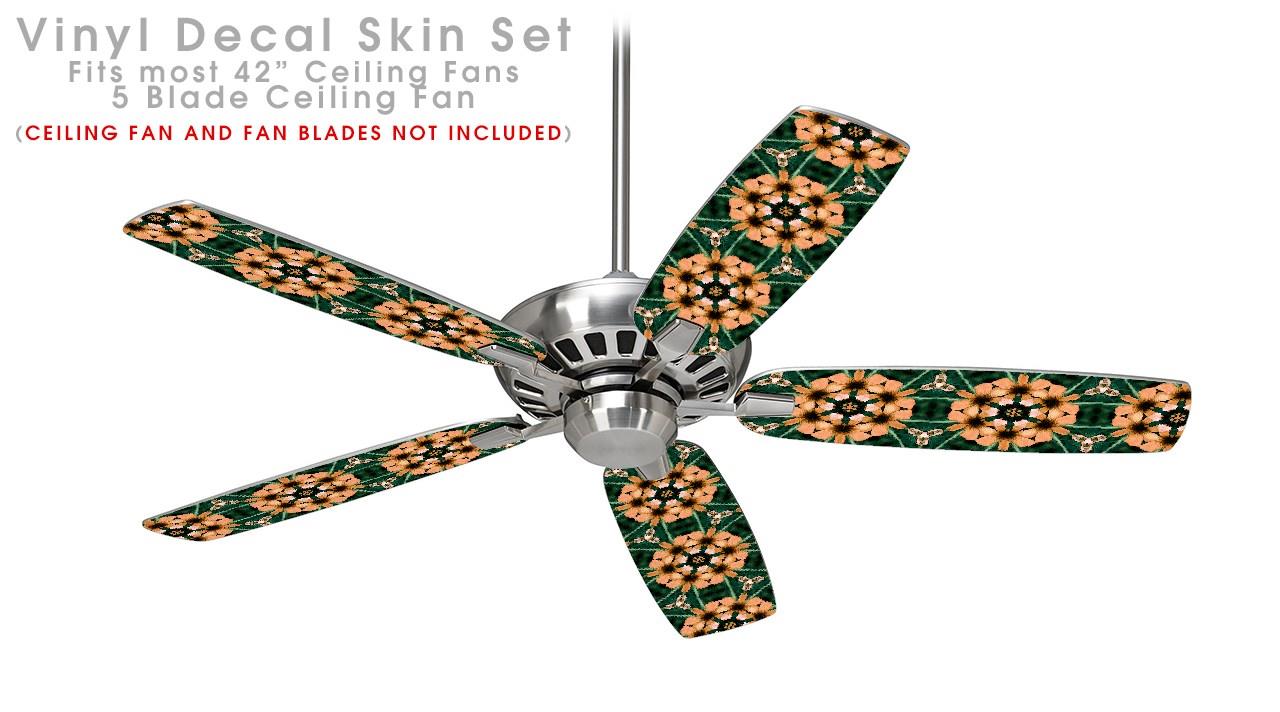 Floral Pattern Orange - Ceiling Fan Skin Kit fits most 42 inch fans (FAN and BLADES SOLD SEPARATELY)