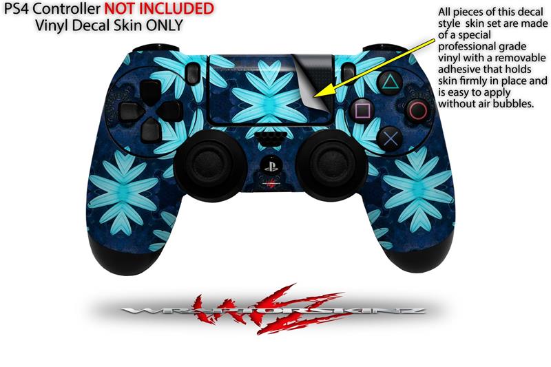 WraptorSkinz Skin compatible with Sony PS4 Dualshock Controller PlayStation 4 Original Slim and Pro Abstract Floral Blue (CONTROLLER NOT INCLUDED)