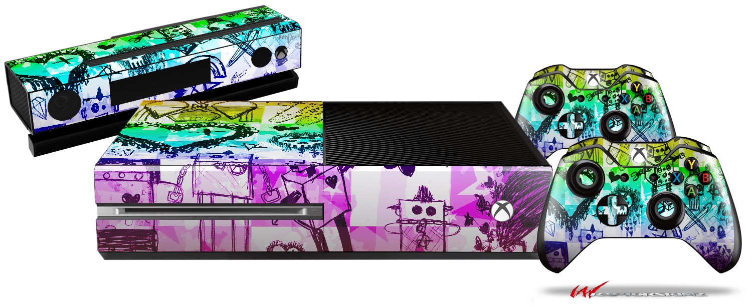 Scene Kid Sketches Rainbow - Holiday Bundle Decal Style Skin fits XBOX One Console Original, Kinect and 2 Controllers (XBOX SYSTEM NOT INCLUDED)