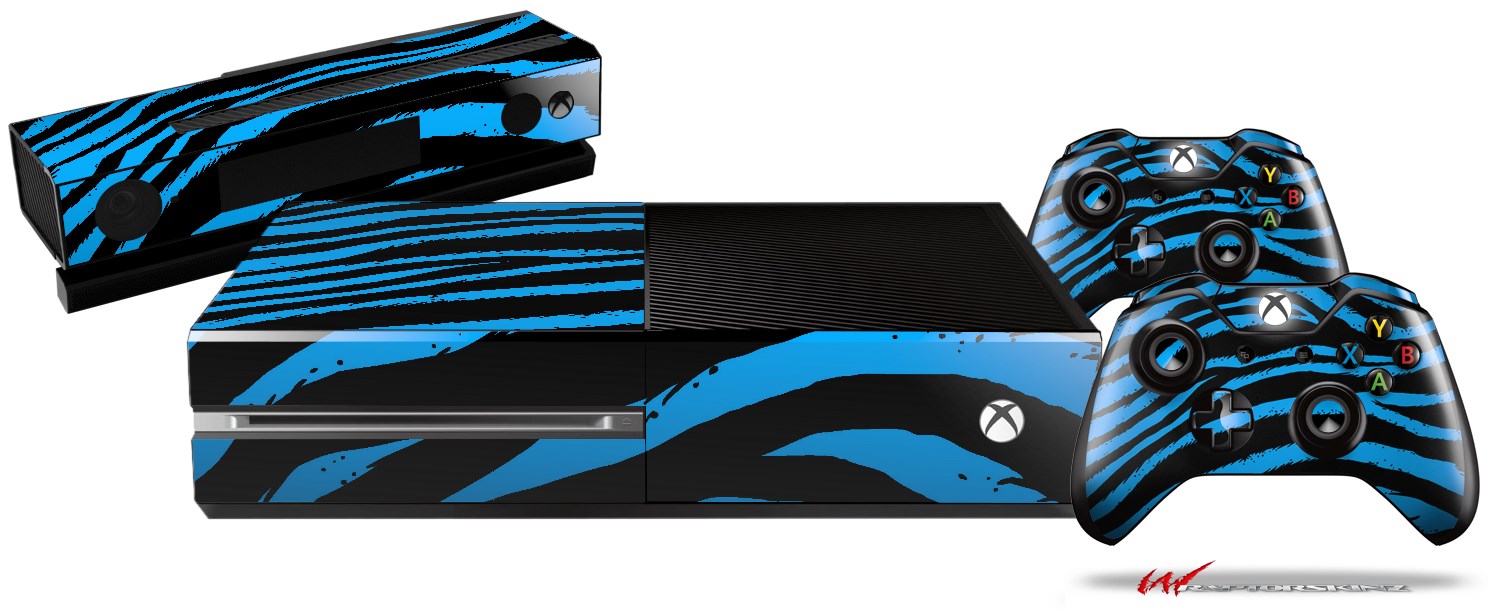 Zebra Blue - Holiday Bundle Decal Style Skin fits XBOX One Console Original, Kinect and 2 Controllers (XBOX SYSTEM NOT INCLUDED)