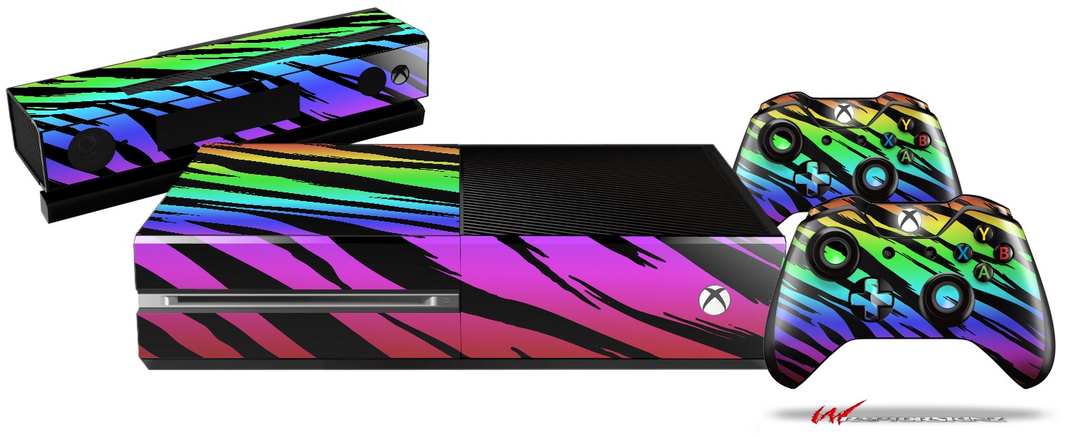 Tiger Rainbow - Holiday Bundle Decal Style Skin fits XBOX One Console Original, Kinect and 2 Controllers (XBOX SYSTEM NOT INCLUDED)
