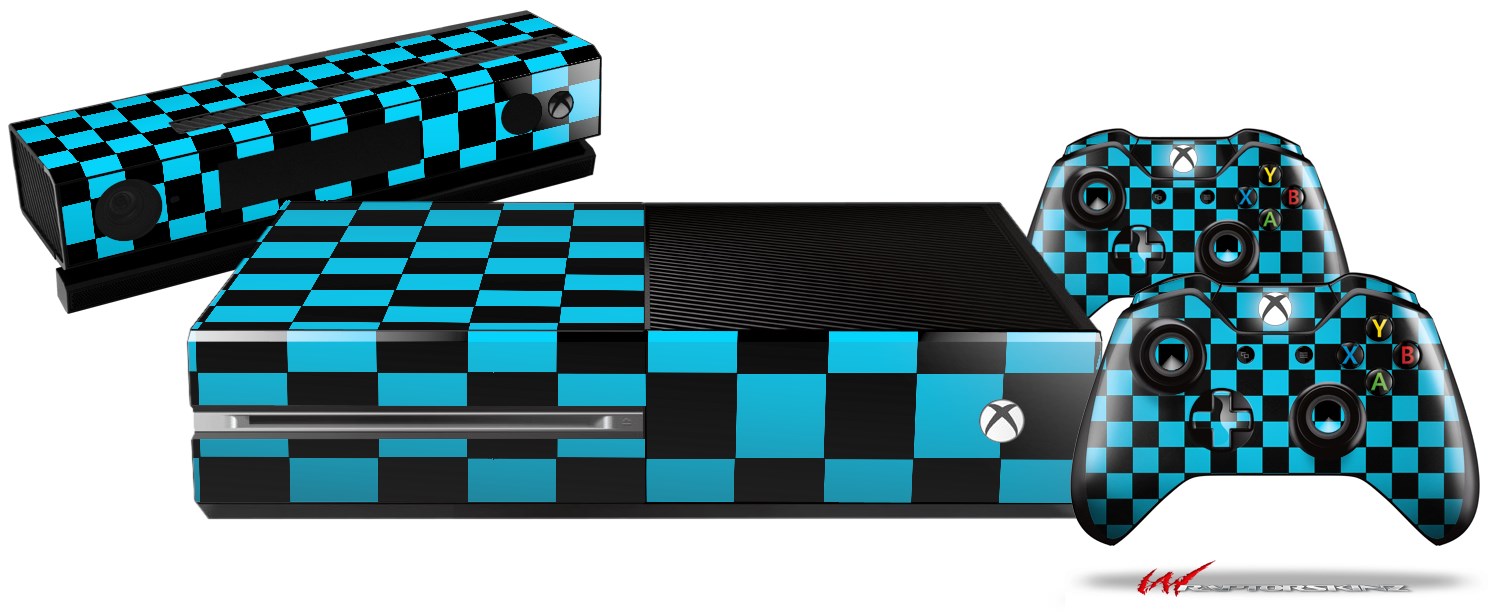 Checkers Blue - Holiday Bundle Decal Style Skin fits XBOX One Console Original, Kinect and 2 Controllers (XBOX SYSTEM NOT INCLUDED)
