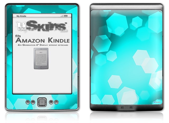 Bokeh Hex Neon Teal - Decal Style Skin (fits 4th Gen Kindle with 6inch display and no keyboard)