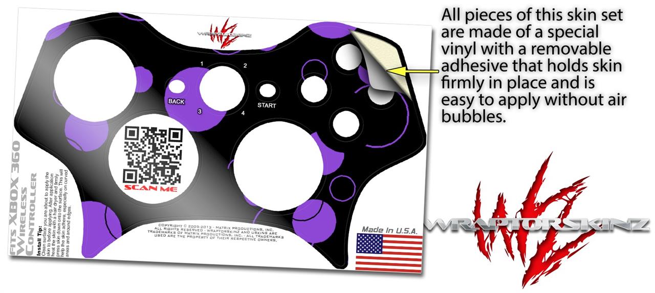 XBOX 360 Wireless Controller Decal Style Skin - Lots of Dots Purple on Black (CONTROLLER NOT INCLUDED)