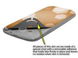 uSkins™ are self adhering vinyl skins that help prevent scratches and look great doing it. Unlike bulky silicon, plastic or metal cases and faceplates, uSkins are designed to be thin and very tough. uSkins are a composite of two layers of commercial grade materials. The bottom layer is a soft, flexible vinyl with a special removable adhesive that is easily positioned, applied without air bubbles, and effortlessly removed without leaving a sticky residue. Next we print the bottom layer with UV protected, fade resistant inks that deliver superb photo quality designs in vibrant colors. Finally we bond a professional grade laminate over the entire skin adding a glossy protective finish.