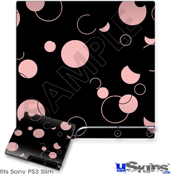 Decal Skin compatible with Sony PS3 Slim Lots of Dots Pink on Black