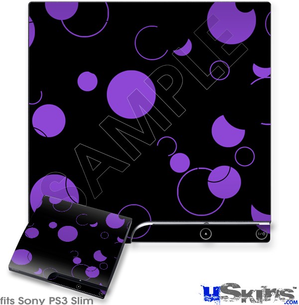 Decal Skin compatible with Sony PS3 Slim Lots of Dots Purple on Black
