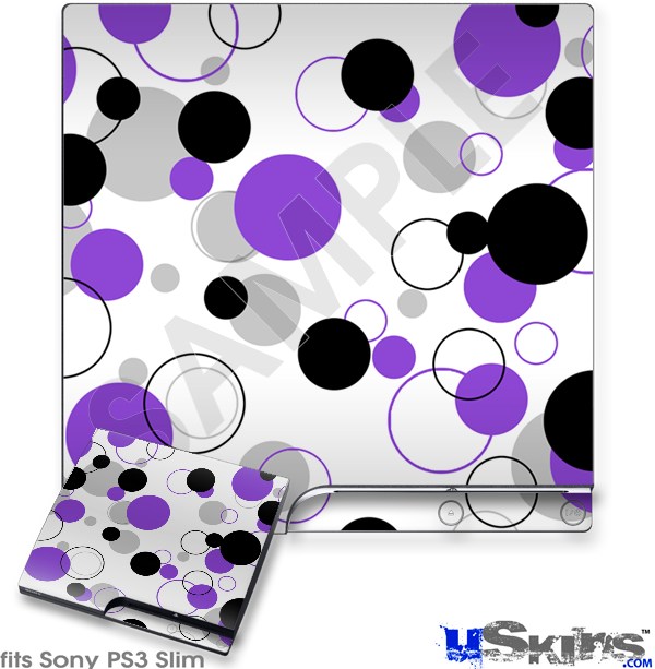 Decal Skin compatible with Sony PS3 Slim Lots of Dots Purple on White