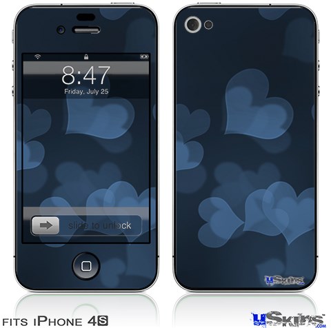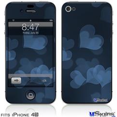 iPhone 4S Decal Style Vinyl Skin - Bokeh Hearts Blue