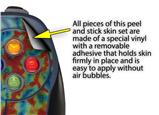 uSkins™ are self adhering vinyl skins that help prevent scratches and look great doing it. Unlike bulky silicon and plastic covers, uSkins are designed to be thin and very tough. uSkins are a composite of two layers of commercial grade materials. The bottom layer is a soft, flexible vinyl with a special removable adhesive that is easily positioned and applied without air bubbles. The bottom layer print with special UV protected, fade resistant inks that deliver superb photo quality designs in vibrant colors. Finally we bond a professional grade laminate over the entire skin adding a glossy protective finish.