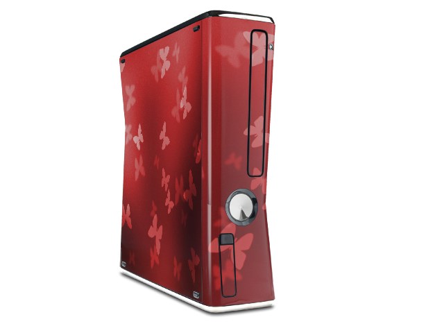 Bokeh Butterflies Red Decal Style Skin for XBOX 360 Slim Vertical
