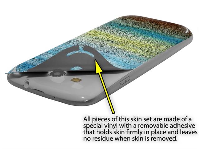 • Decal style vinyl skin covers front and back of Samsung Galaxy S III S3 phone.