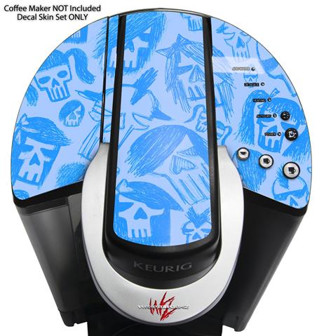 Decal Style Vinyl Skin compatible with Keurig K40 Elite Coffee Makers Skull Sketches Blue (KEURIG NOT INCLUDED)