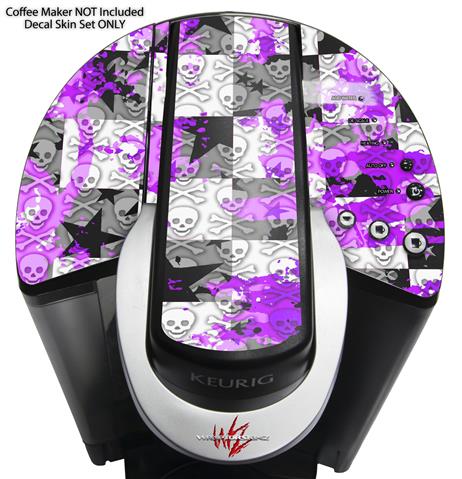 Decal Style Vinyl Skin compatible with Keurig K40 Elite Coffee Makers Purple Checker Skull Splatter (KEURIG NOT INCLUDED)