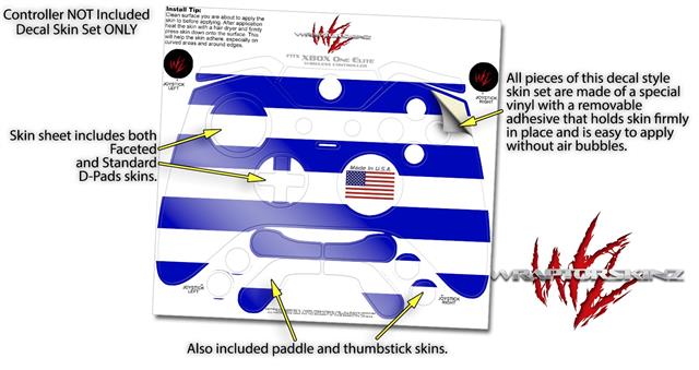 Psycho Stripes Blue and White - Decal Style Skin fits Microsoft XBOX One ELITE Wireless Controller