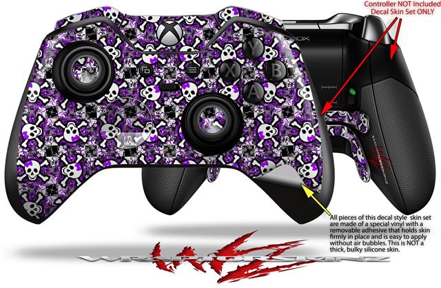 Splatter Girly Skull Purple - Decal Style Skin fits Microsoft XBOX One ELITE Wireless Controller