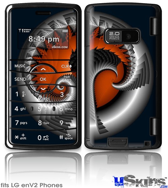 Skin covers front and back of LG enV2 cell phone.