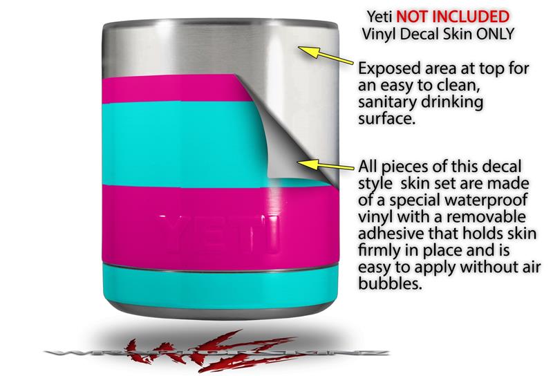 Skin Decal Wrap for Yeti Rambler Lowball - Psycho Stripes Neon Teal and Hot Pink
