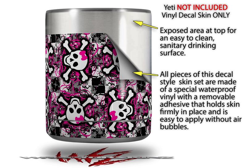 Skin Decal Wrap for Yeti Rambler Lowball - Splatter Girly Skull Pink