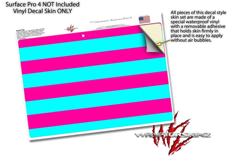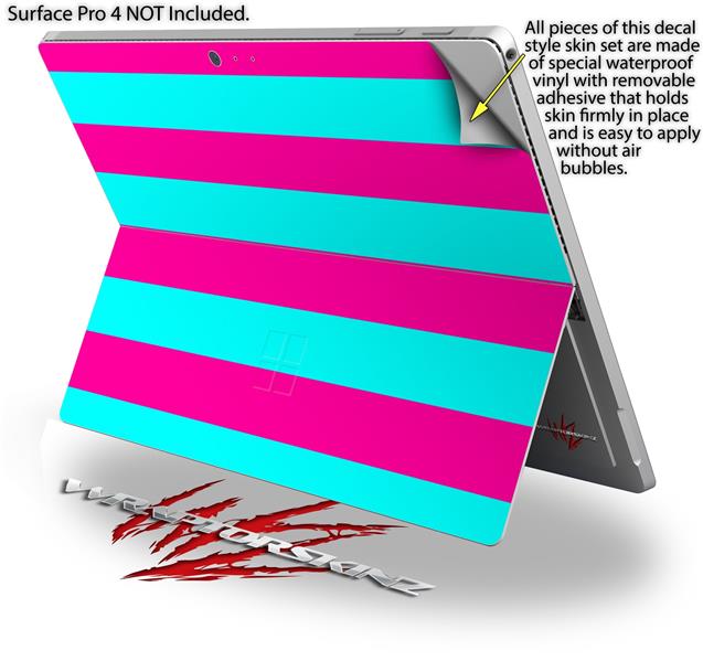 Psycho Stripes Neon Teal and Hot Pink - Decal Style Vinyl Skin (fits Microsoft Surface Pro 4)