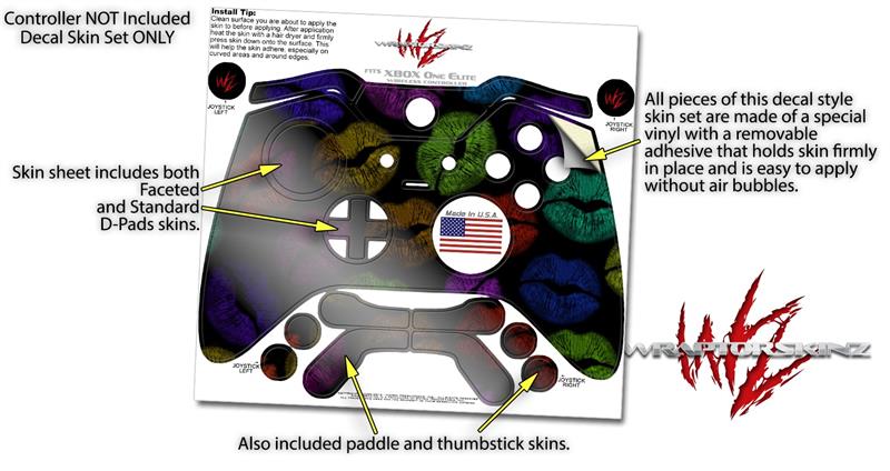 Rainbow Lips Black - Decal Style Skin fits Microsoft XBOX One ELITE Wireless Controller