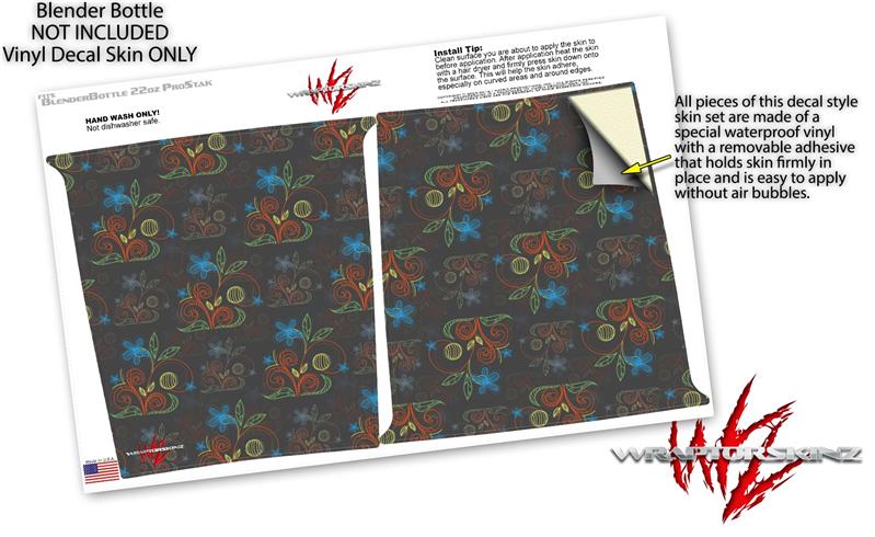 Decal Style Skin Wrap works with Blender Bottle 22oz ProStak Flowers Pattern 07 (BOTTLE NOT INCLUDED)