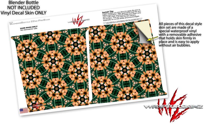 Decal Style Skin Wrap works with Blender Bottle 22oz ProStak Floral Pattern Orange (BOTTLE NOT INCLUDED)