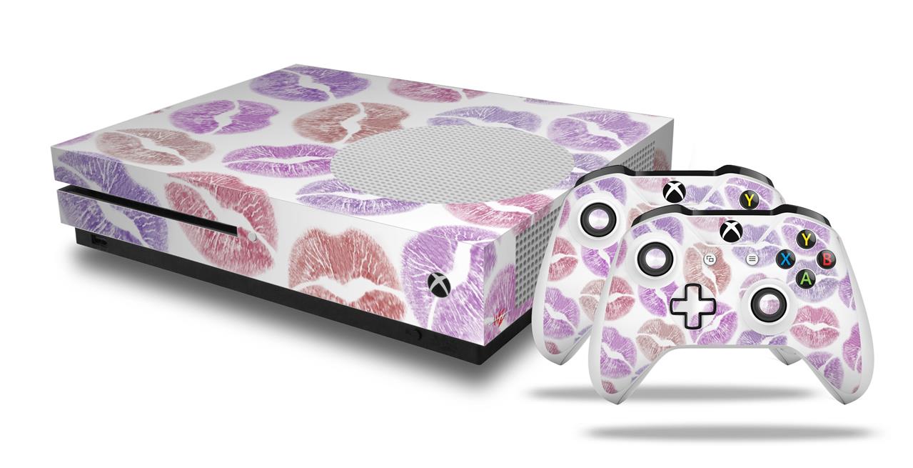 WraptorSkinz Decal Skin Wrap Set works with 2016 and newer XBOX One S Console and 2 Controllers Pink Purple Lips
