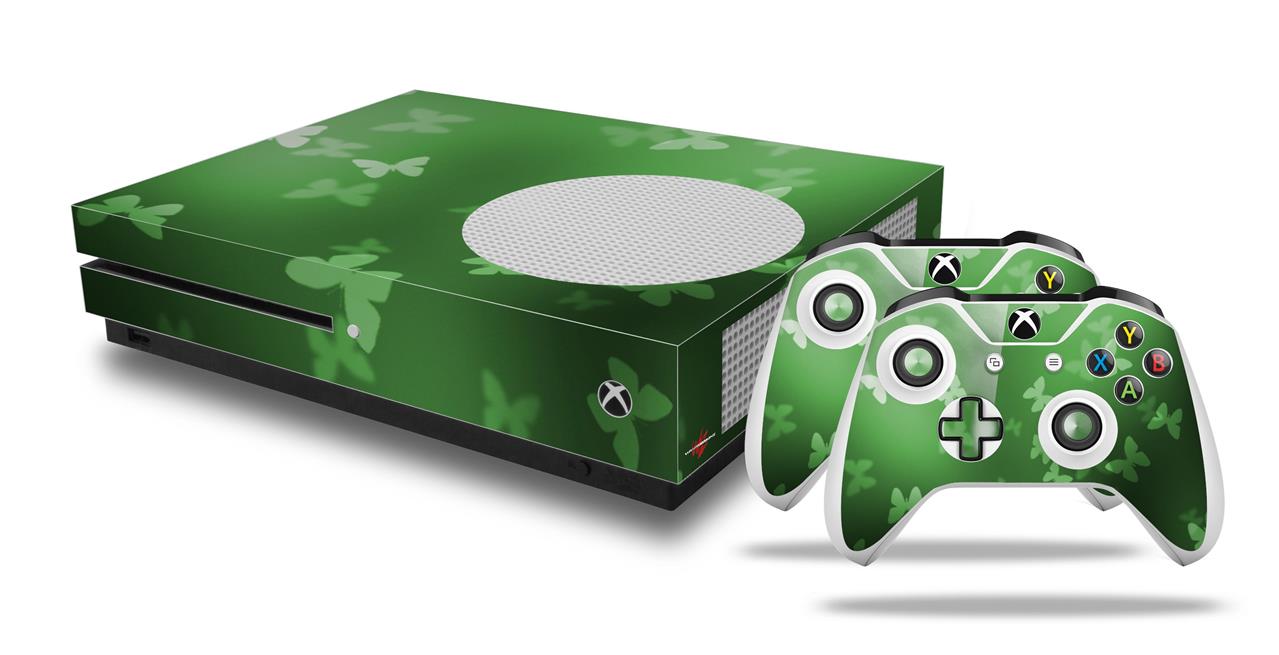 WraptorSkinz Decal Skin Wrap Set works with 2016 and newer XBOX One S Console and 2 Controllers Bokeh Butterflies Green