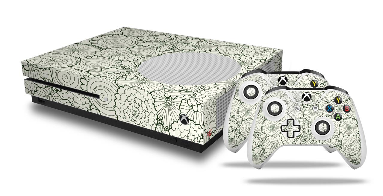 WraptorSkinz Decal Skin Wrap Set works with 2016 and newer XBOX One S Console and 2 Controllers Flowers Pattern 05
