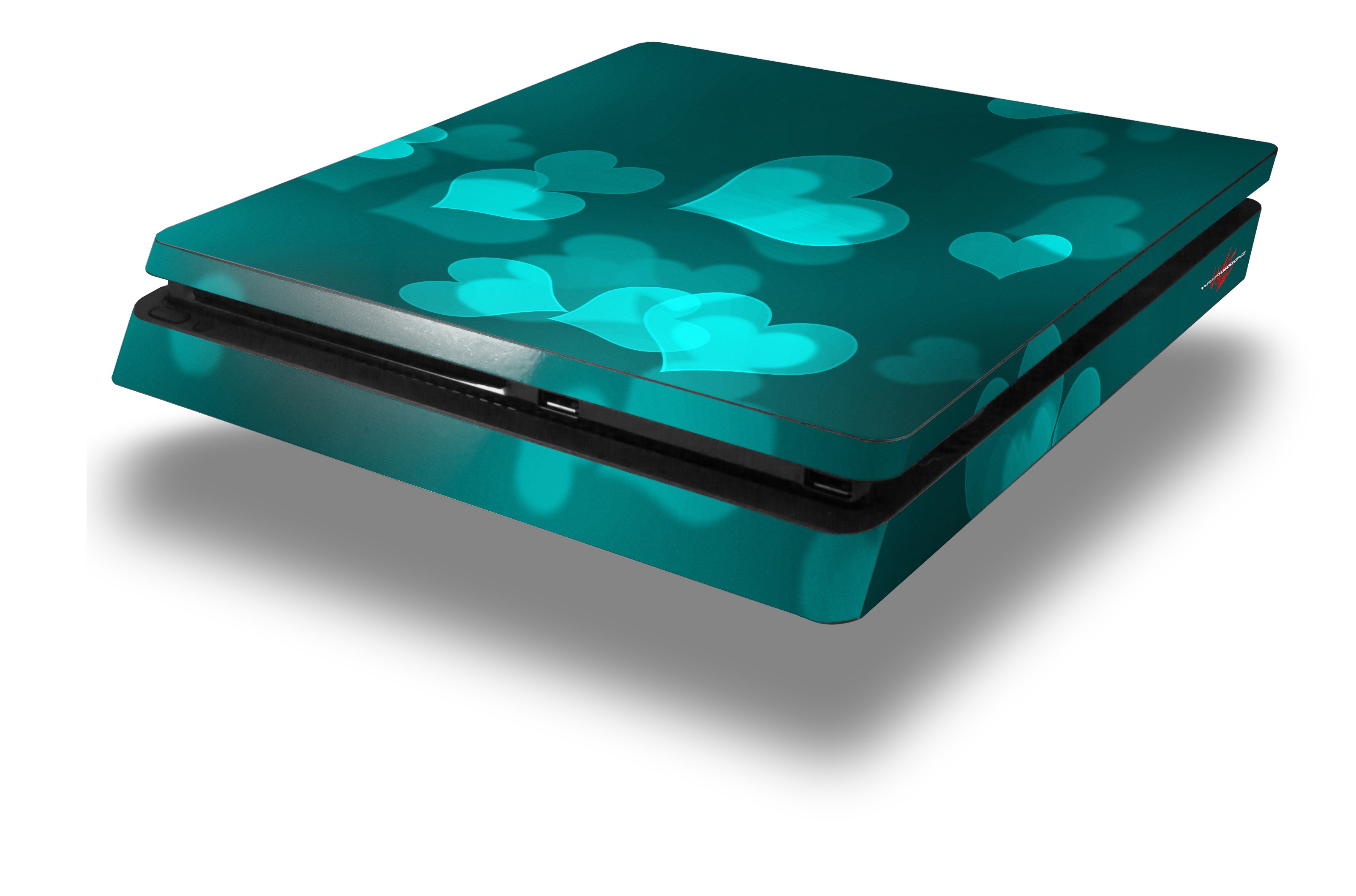 Vinyl Decal Skin Wrap compatible with Sony PlayStation 4 Slim Console Bokeh Hearts Neon Teal (PS4 NOT INCLUDED)