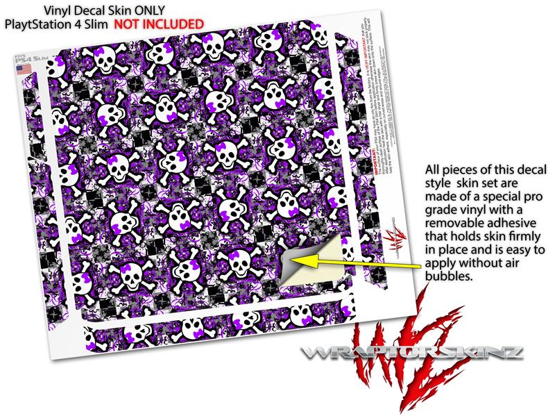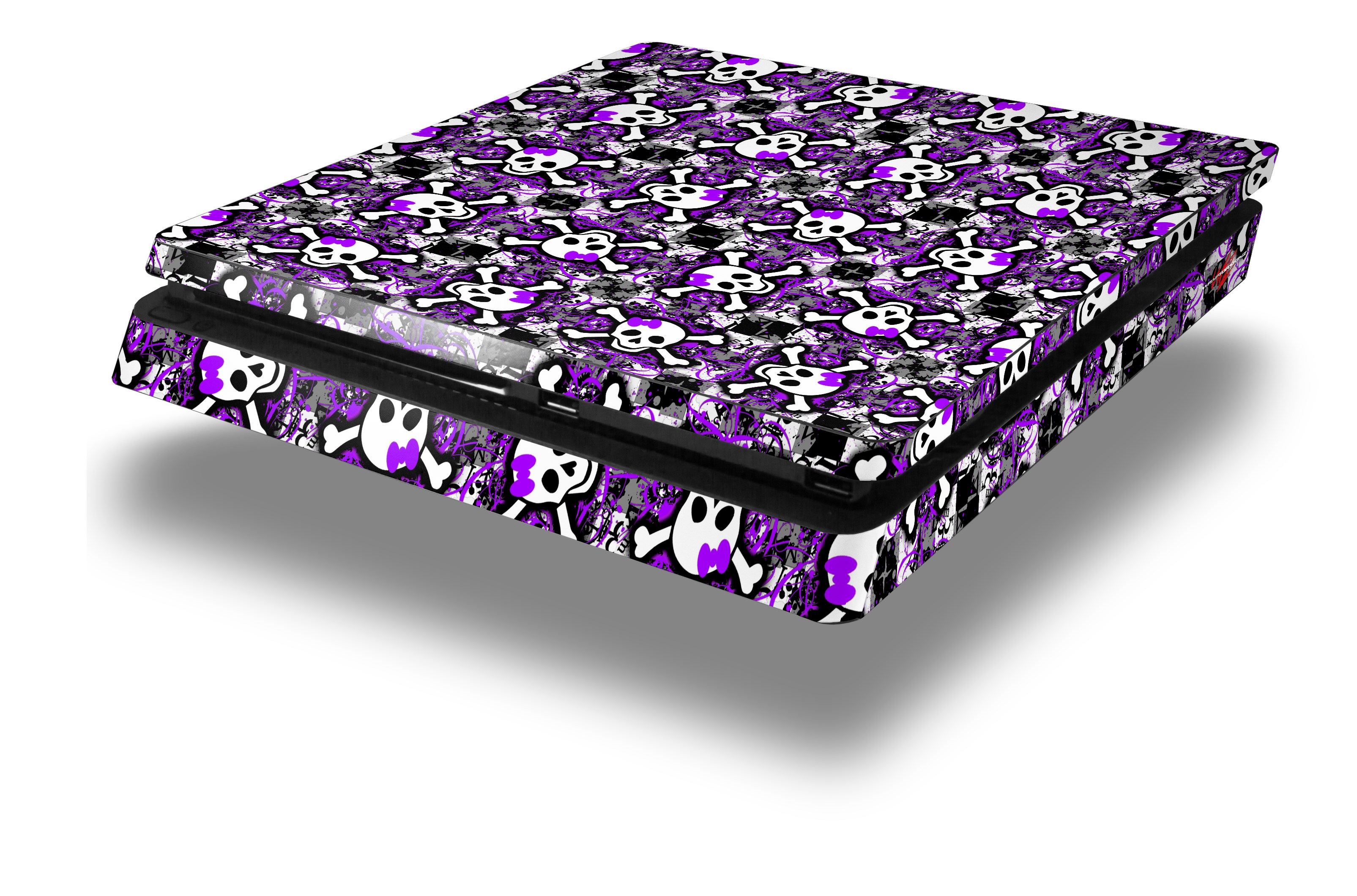 Vinyl Decal Skin Wrap compatible with Sony PlayStation 4 Slim Console Splatter Girly Skull Purple (PS4 NOT INCLUDED)