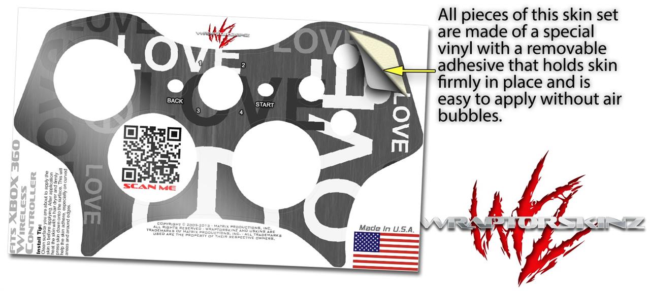 XBOX 360 Wireless Controller Decal Style Skin - Love and Peace Gray (CONTROLLER NOT INCLUDED)