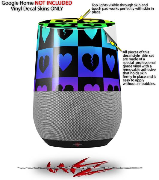 Decal Style Skin Wrap for Google Home Original - Love Heart Checkers Rainbow (GOOGLE HOME NOT INCLUDED)