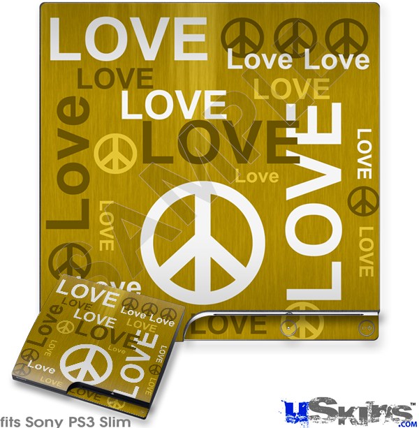 Decal Skin compatible with Sony PS3 Slim Love and Peace Yellow