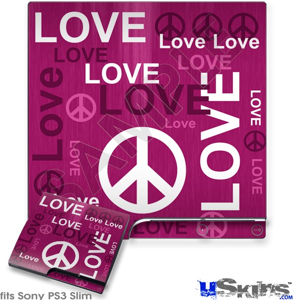 Decal Skin compatible with Sony PS3 Slim Love and Peace Hot Pink
