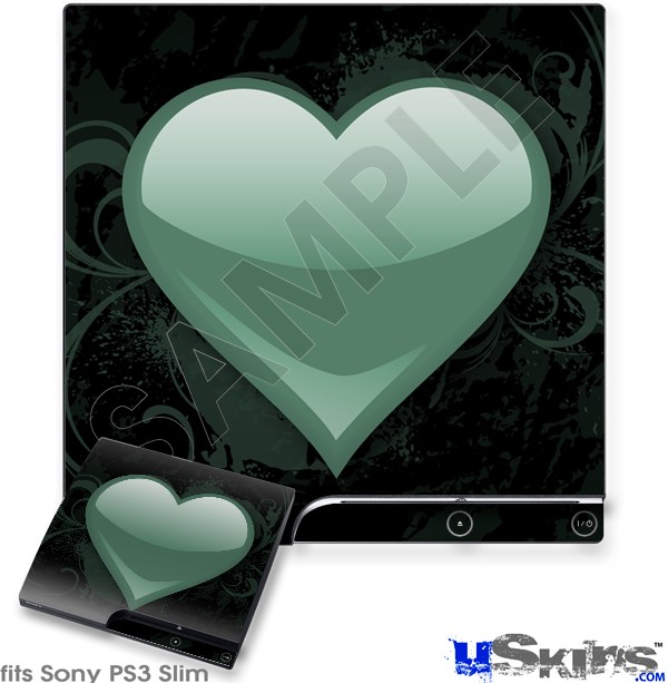 Decal Skin compatible with Sony PS3 Slim Glass Heart Grunge Seafoam Green
