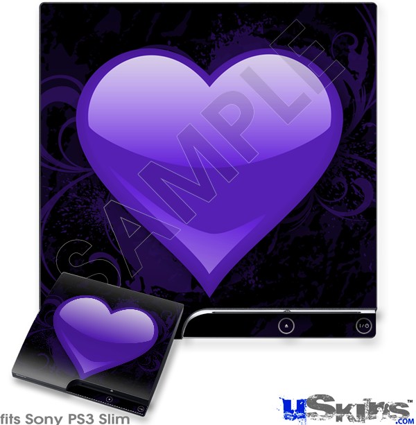 Decal Skin compatible with Sony PS3 Slim Glass Heart Grunge Purple