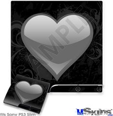 Decal Skin compatible with Sony PS3 Slim Glass Heart Grunge Gray